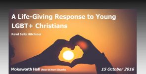 The well-known T.V. and media commentator the Revd Sally Hitchiner is coming to Dublin and Belfast to facilitate two workshops centred on young LGBT+ people and faith. She will start this series of two talks in Dublin on October 15th Sally is Coordinating Anglican Chaplain and Interfaith Adviser at Brunel University, she is often featured […]